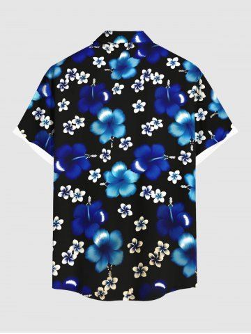 Chemise hawaïenne grande taille à imprimé fleurs d'hibiscus ombré et poches boutonnées pour homme - Bleu Profond - L