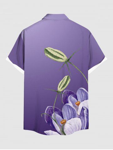 Chemise hawaïenne à imprimé floral ombré grande taille et poche boutonnée pour homme - Pourpre - Pourpre
