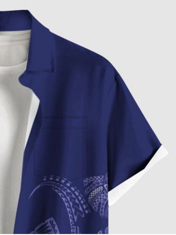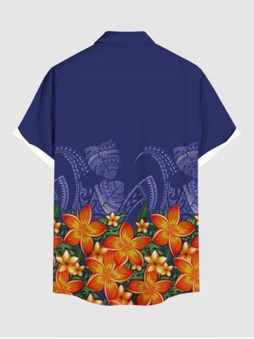 Chemise hawaïenne à imprimé floral tropical et grandes tailles avec poche boutonnée pour homme - Bleu - Bleu