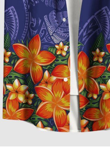 Chemise à Manches Courts> Chemise hawaïenne à imprimé floral tropical et grandes tailles avec poche boutonnée pour homme