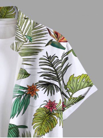 Chemise hawaïenne à imprimé floral tropical et grandes tailles avec poche boutonnée pour homme - Vert - Vert