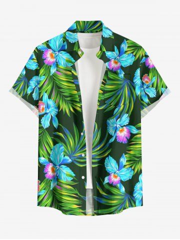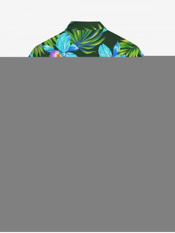 Chemise hawaïenne à imprimé floral tropical et grandes tailles avec poche boutonnée pour homme - Vert Profond - M