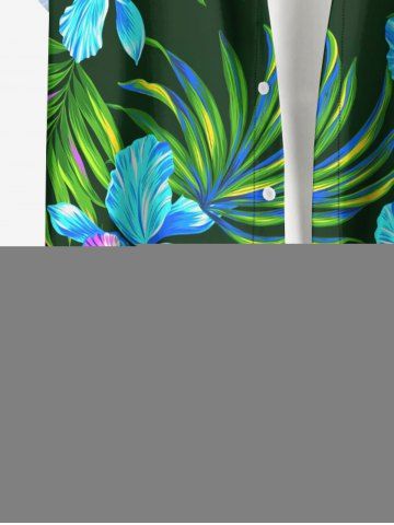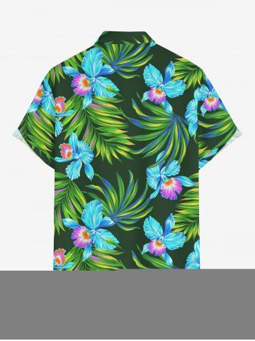 Chemise hawaïenne à imprimé floral tropical et grandes tailles avec poche boutonnée pour homme - Vert Profond - L