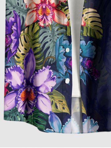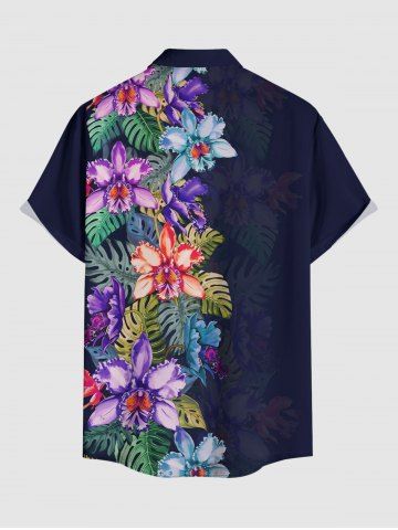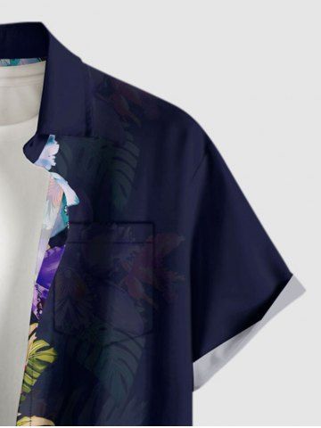 Chemise hawaïenne à imprimé floral tropical et grandes tailles avec poche boutonnée pour homme - Bleu Profond - S