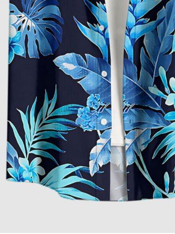 Chemise hawaïenne à imprimé floral tropical et grandes tailles avec poche boutonnée pour homme - Bleu Profond - M
