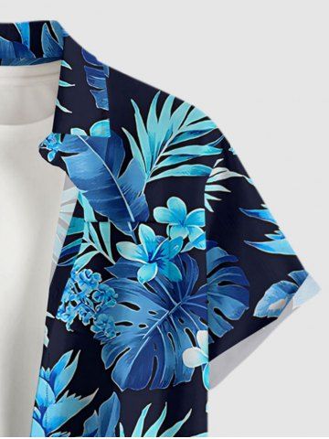 Chemise hawaïenne à imprimé floral tropical et grandes tailles avec poche boutonnée pour homme - Bleu Profond - Xl