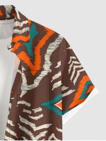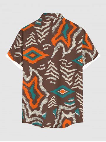 Chemise hawaïenne à imprimé géométrique ethnique grande taille et poche boutonnée pour homme - Brun - Brun