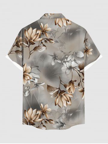 Chemise hawaïenne à imprimé ombré de fleurs et de feuilles, grande taille, avec poche boutonnée, pour hommes - Brun Légère - Marron Clair