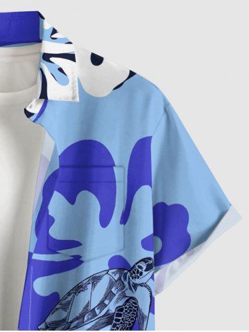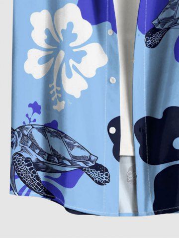 Chemise hawaïenne à imprimé tortue et hibiscus, grande taille, poche boutonnée, pour homme - Bleu Clair - Bleu Clair