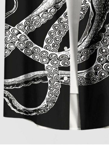 Chemise hawaïenne à poche boutonnée, imprimé pieuvre ombré grande taille pour hommes - Noir - Noir