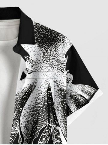 Chemise hawaïenne à poche boutonnée, imprimé pieuvre ombré grande taille pour hommes - Noir - Noir