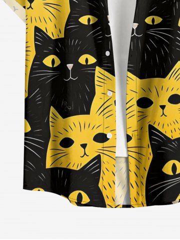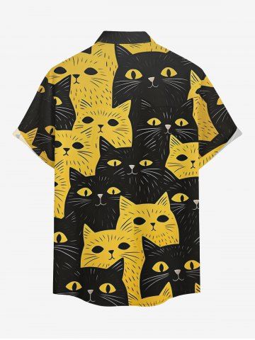 Chemise hawaïenne à poches boutonnées, imprimé chat bicolore grande taille pour homme - Jaune - Jaune