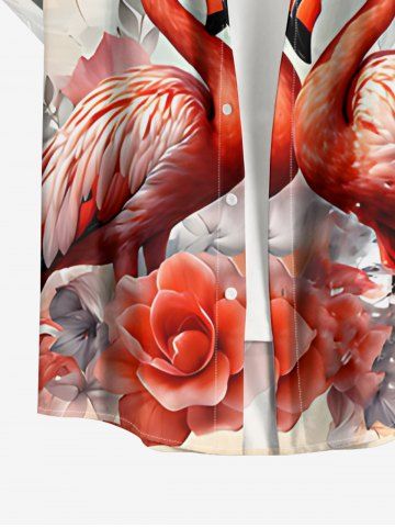 Chemise à Manches Courts > Chemise hawaïenne à poches boutonnées, imprimé cocotier, fleur de mer et flamant rose, grande taille, pour hommes