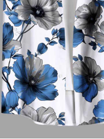 Chemise hawaïenne à poches boutonnées, imprimé floral bicolore grande taille pour homme - Bleu - Bleu