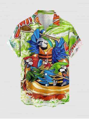 Chemise hawaïenne à poches boutonnées, imprimé perroquet et vagues, grande taille, pour homme - Vert - Vert