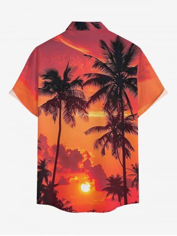 Chemise hawaïenne à poches boutons, imprimé cocotier et crépuscule, grande taille, pour homme - Orange Foncé - 3xl