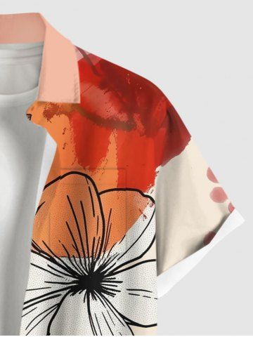 Chemise hawaïenne à poches boutons, imprimé colorblock de fleurs et de branches, grande taille, pour hommes - Orange - Orange