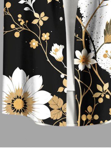 Chemise hawaïenne à poches boutons, imprimé contrasté de fleurs, feuilles et branches, grande taille, pour hommes - Noir - Noir