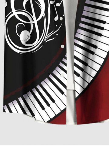 Chemise hawaïenne à poches boutons, imprimé de symboles musicaux de piano, grande taille, pour hommes - Noir - Noir