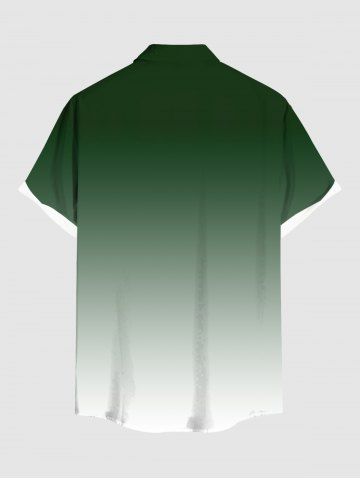 Chemise hawaïenne à poches boutons, imprimé dégradé tie-dye avec motif de bus et cocotiers, grande taille, pour hommes - Vert - Vert