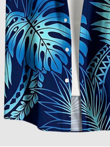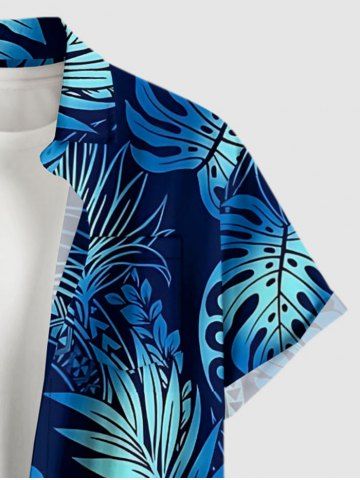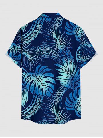 Chemise hawaïenne à poches boutons, imprimé ethnique tropical ombré grande taille pour hommes - Bleu Marine - Bleu Marin