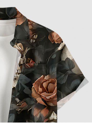 Chemise hawaïenne à poches boutons, imprimé fleurs et crânes, grandes tailles pour hommes - Noir - Noir