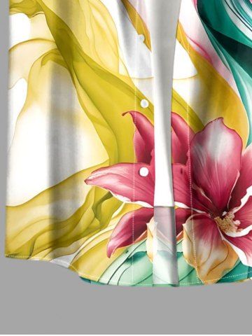 Chemise hawaïenne à poches boutons, imprimé floral aquarelle, grandes tailles, pour hommes - Blanc - Blanc