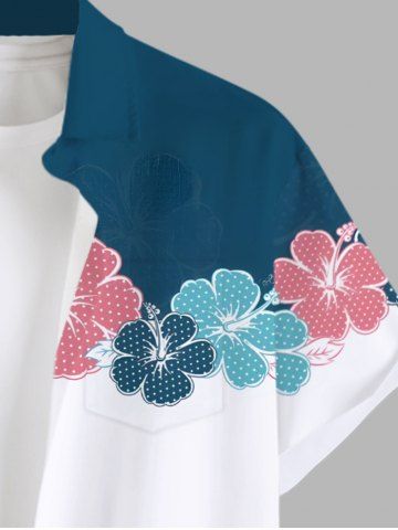 Chemise à Manches Courts> Chemise hawaïenne à poches boutons, imprimé floral contrasté, grande taille, pour hommes