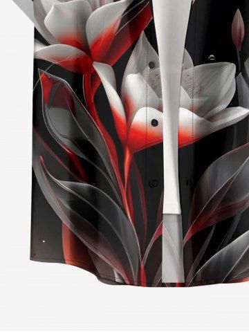 Chemise hawaïenne à poches boutons, imprimé floral et feuilles ombré, grande taille, pour hommes - Noir - Noir