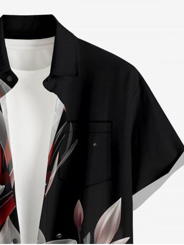 Chemise hawaïenne à poches boutons, imprimé floral et feuilles ombré, grande taille, pour hommes - Noir - Noir