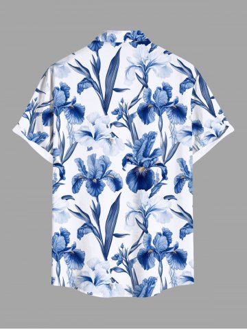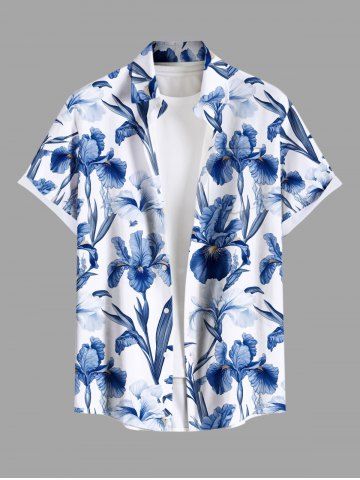 Chemise hawaïenne à poches boutons, imprimé floral, feuilles et branches, grande taille pour homme - Bleu - Bleu