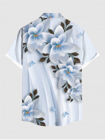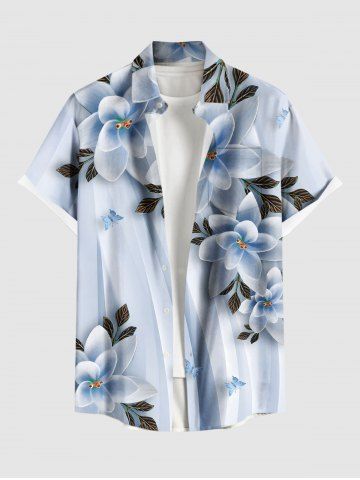 Chemise hawaïenne à poches boutons, imprimé floral ombré grandes tailles pour hommes - Bleu Poudre - 5xl