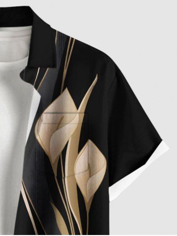 Chemise hawaïenne à poches boutons, imprimé lys et courbes, grande taille, pour hommes - Noir - Noir