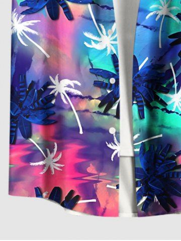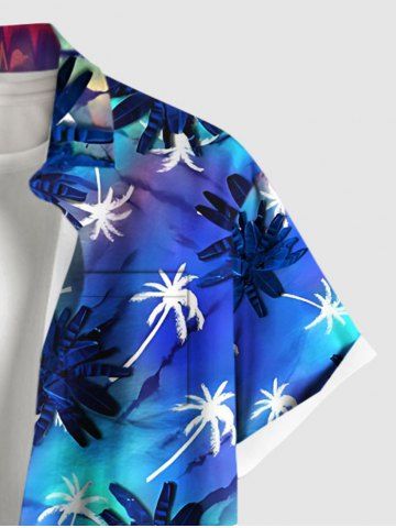 Chemise hawaïenne à poches boutons, imprimé ombré coloré avec cocotier, grande taille, pour hommes - Bleu Marine - Bleu Marin