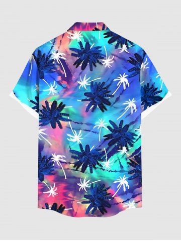 Chemise à Manches Courts> Chemise hawaïenne à poches boutons, imprimé ombré coloré avec cocotier, grande taille, pour hommes