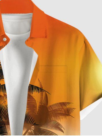 Chemise hawaïenne à poches boutons, imprimé ombré de cocotiers et d'herbe, grande taille, pour hommes - Orange - Orange