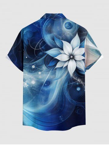 Chemise hawaïenne à poches boutons, imprimé ombré de fleurs et de galaxie, grande taille, pour hommes - Bleu Profond - Xl