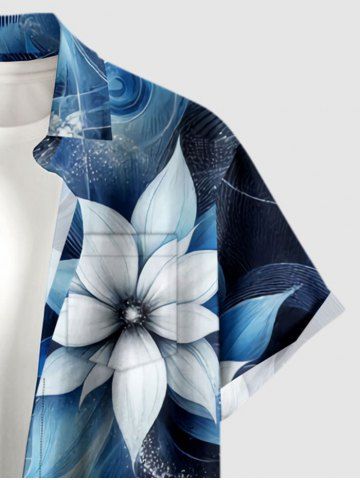 Chemise hawaïenne à poches boutons, imprimé ombré de fleurs et de galaxie, grande taille, pour hommes - Bleu Profond - 5xl