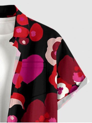 Chemise à Manches Courts> Chemise hawaïenne à poches boutons, imprimé pétales de fleurs et cœurs, grandes tailles pour hommes