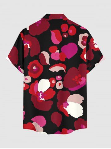 Chemise hawaïenne à poches boutons, imprimé pétales de fleurs et cœurs, grandes tailles pour hommes - Rouge - Rouge