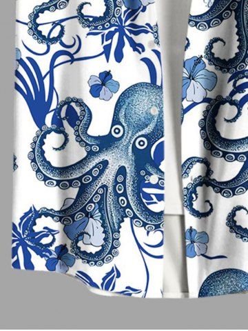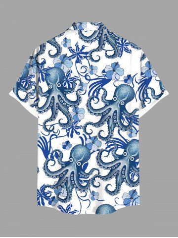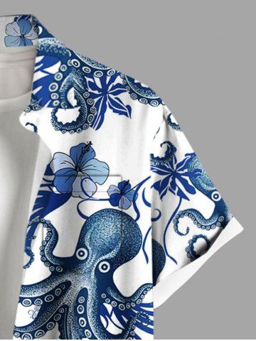 Chemise hawaïenne à poches boutons, imprimé pieuvre et fleurs d'hibiscus, grande taille, pour homme - Bleu Ciel - Bleu Ciel