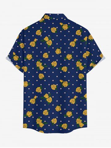 Chemise hawaïenne à pois et imprimé floral grande taille pour homme - Bleu Profond - 5xl