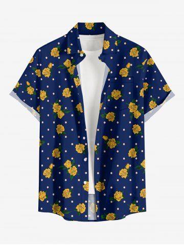 Chemise hawaïenne à pois et imprimé floral grande taille pour homme - Bleu Profond - 6xl