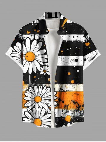 Chemise à Manches Courts > Chemise hawaïenne à rayures et imprimé marguerites, grande taille, avec poches boutonnées, pour homme
