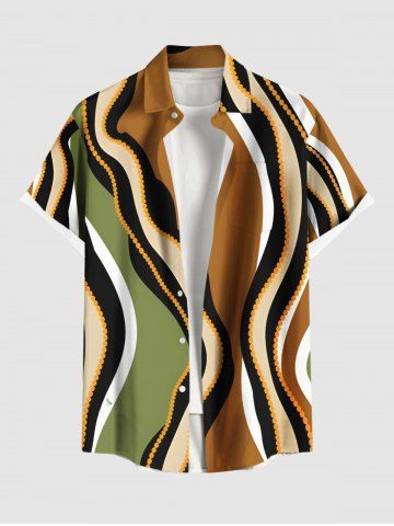 Chemise hawaïenne à rayures et poches boutonnées grande taille pour homme - Café - Café