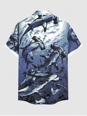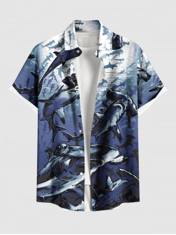 Chemise à Manches Courts> Chemise Hawaïenne avec Boutons et Poche à Imprimé Requins dans le Monde Sous-Marin Grande-Taille pour Hommes