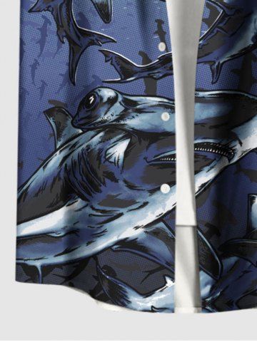 Chemise Hawaïenne avec Boutons et Poche à Imprimé Requins dans le Monde Sous-Marin Grande-Taille pour Hommes - Multi-a - S