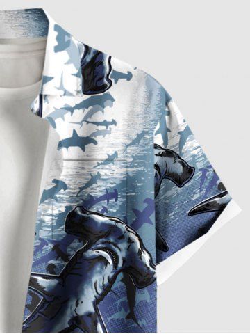 Chemise Hawaïenne avec Boutons et Poche à Imprimé Requins dans le Monde Sous-Marin Grande-Taille pour Hommes - Multi-a - 2xl