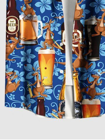 Chemise Hawaïenne avec Poche Kangourou à Imprimé Bière et Fleurs Grande-Taille pour Hommes - Bleu - Bleu