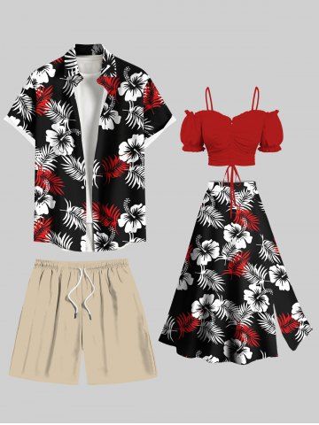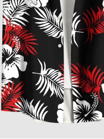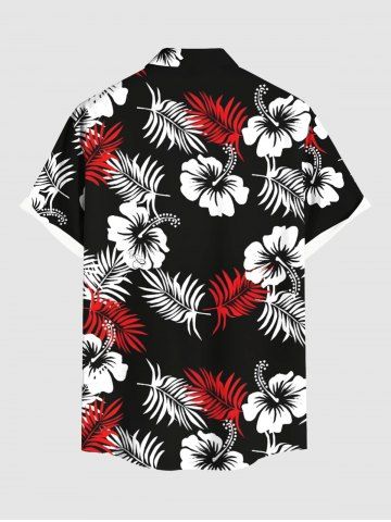 Chemise hawaïenne bicolore grande taille à imprimé feuilles tropicales et fleurs d'hibiscus, avec poches boutonnées, pour homme - Noir - Noir